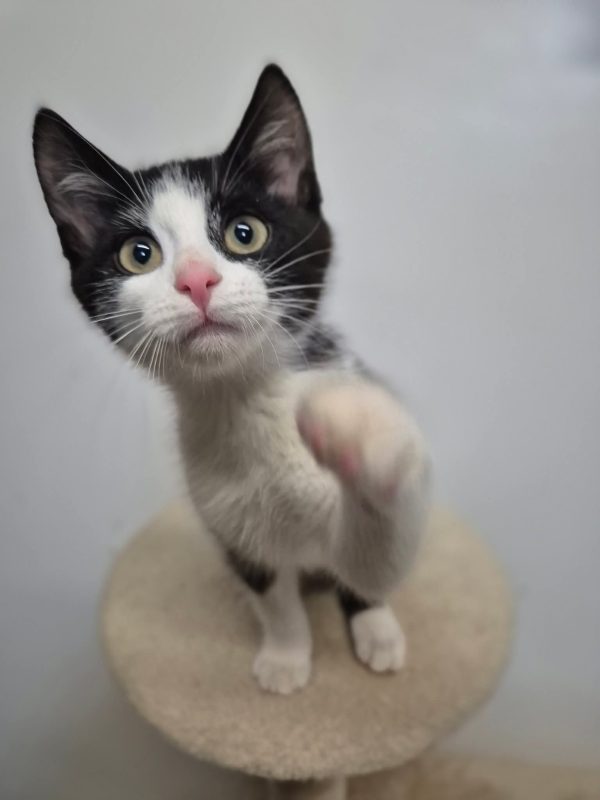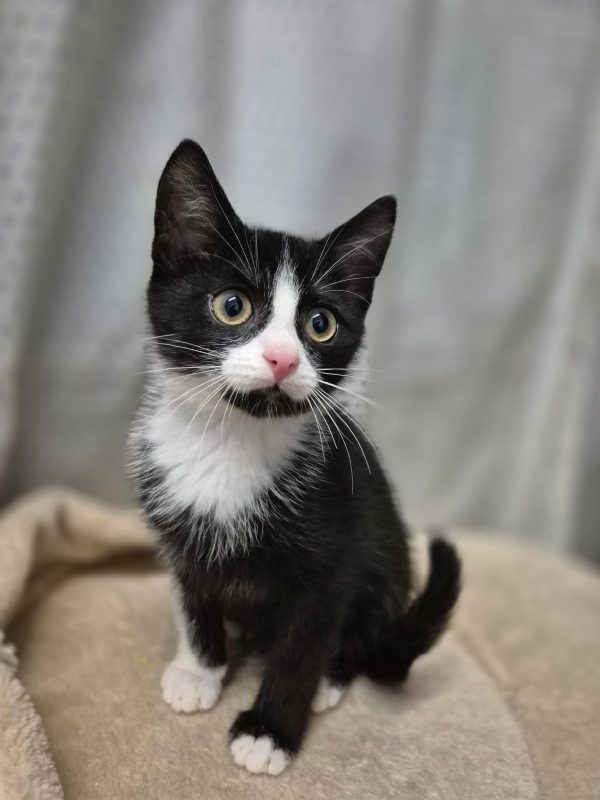 - Wymagania: Potrzebuje spokojnego otoczenia, rutyny i uwagi przy diecie. Może dołączyć do innego kociaka.
