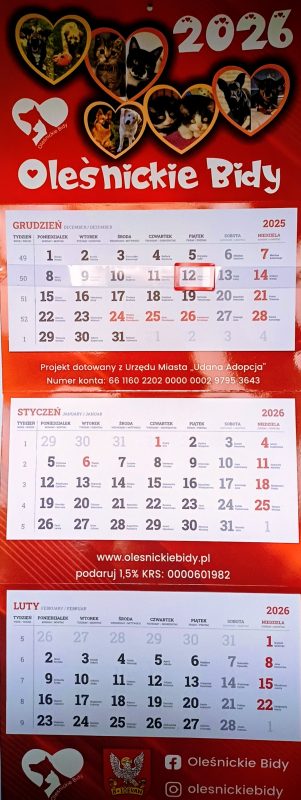 Cena kalendarza: 30 zł📦 Koszt wysyłki: 16 zł📲 Jak kupić?Zakup odbywa się poprzez SMS.Wystarczy:1️⃣ dokonać wpłaty na nasze konto2️⃣ wysłać SMS z:potwierdzeniem przelewu adresem do wysyłki z informacją zamówionych sztuk