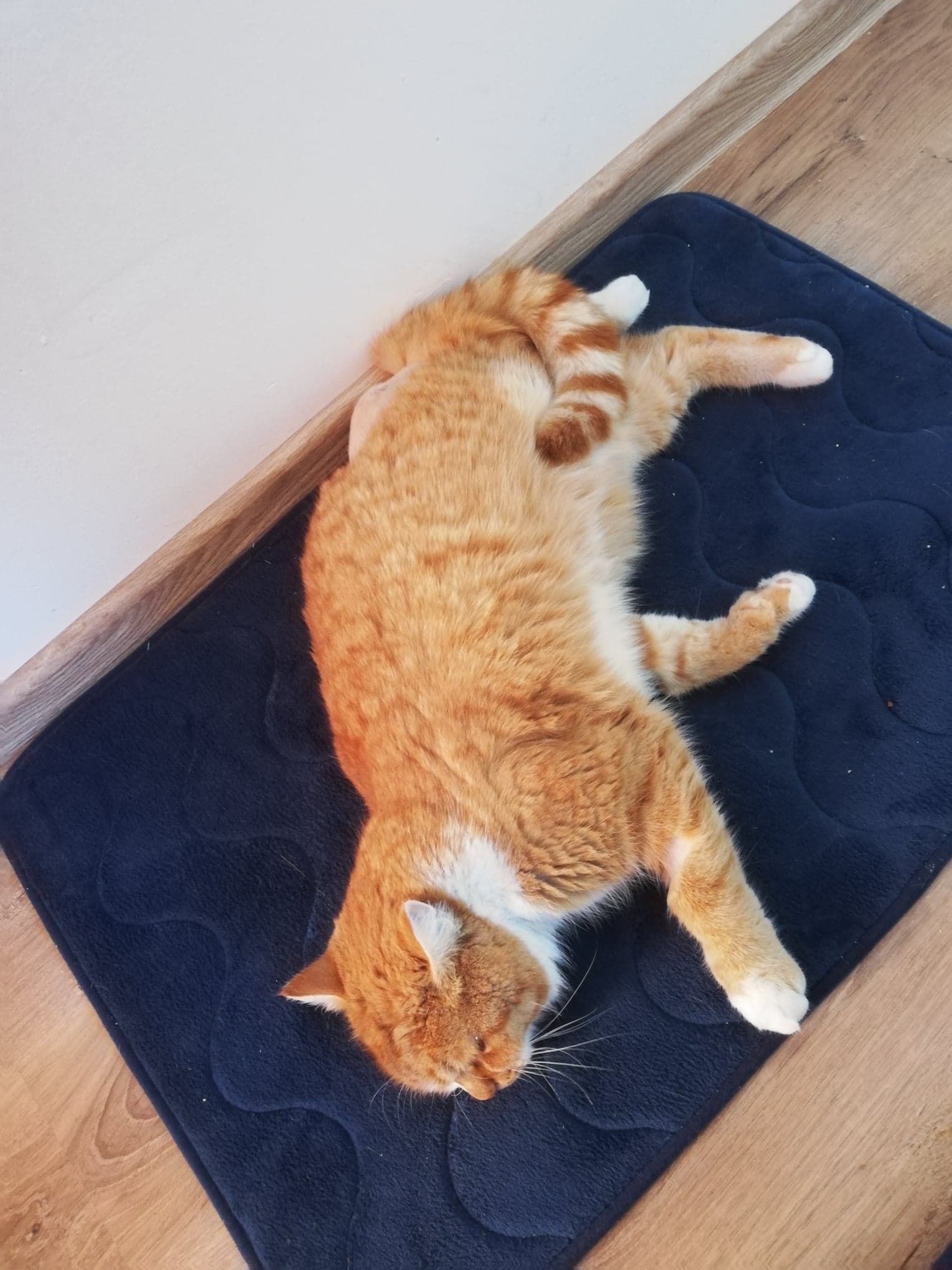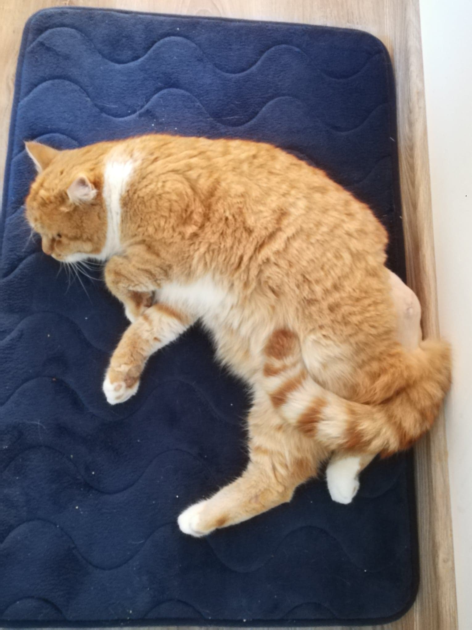 Pomimo niepełnosprawności Harry korzysta pięknie z kuwety, domaga się kontaktu, głaskania, zabawy, uwagi.